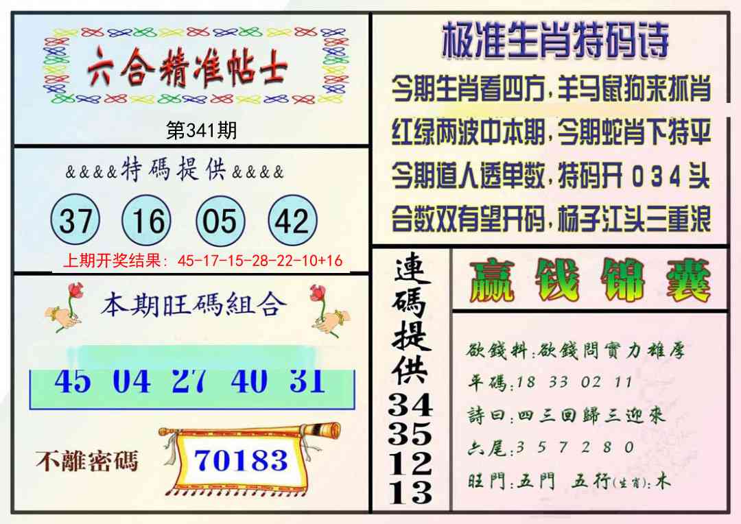 341期精准贴士[图]