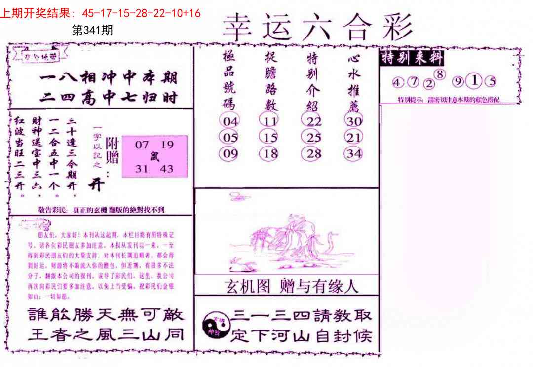 341期幸运六合彩[图]